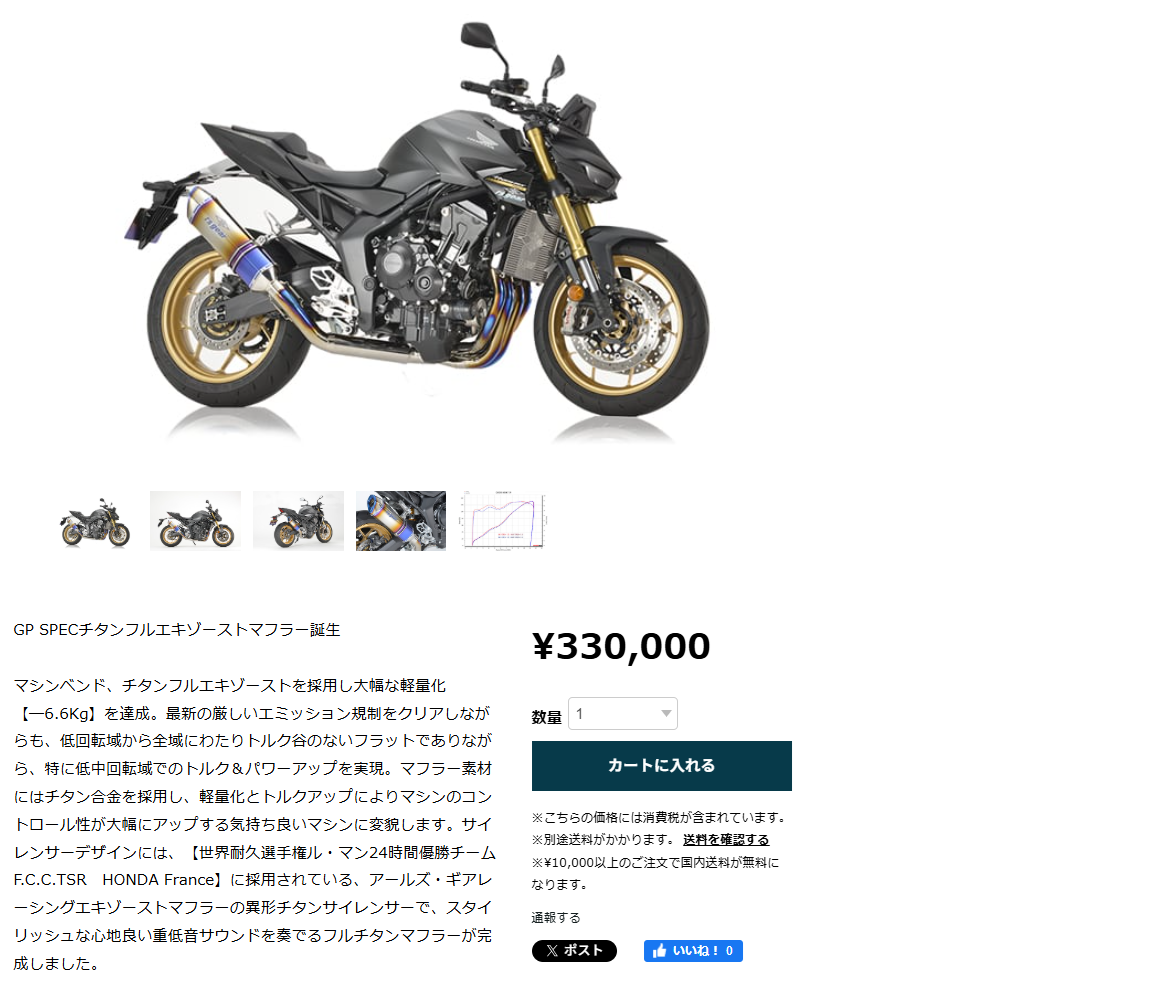 見た目も大事ですが、なきゃむらの大好物は性能UPです。街乗りで一番多用する7千回転までのトルクがUPしてます。これは加速が良くなり楽しく乗れそうです。重量もSTD11kgから4.4kgと6.6kgも軽量に!あとは気になるお値段ですが…。