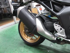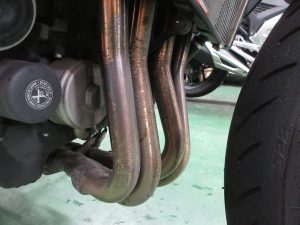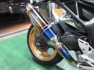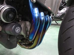 見た目はめちゃくちゃ良くなりました。なんといってもエキパイ!純正のステンレス製はどうしても黒ずんで汚れます。チタンならこの焼き色をずっとキープ。自分のバイクのお手入れを怠るなきゃむらにはありがたい。