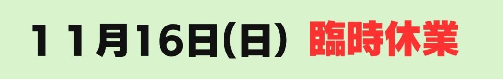 11月16日(日)はライディングスクールの兼ね合いで臨時休業となります。