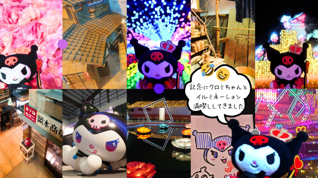 物販でイベント限定のクロミちゃんが居たのでお迎えして一緒にイルミネーションも楽しんできましたよ~!※展示物や装飾品には触れないように細心の注意を払いながら、他のお客様のご迷惑にならないよう配慮しつつ撮影をしております。ご安心ください。