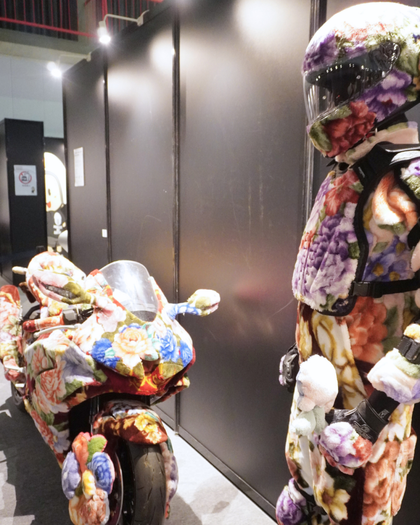 上のホンダウイングなんですが近くで見るとグローブとかツナギの端材なのかな?よくできてておぉ~となりました。語彙力…