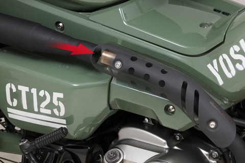 1971年デイトナでCB750レーサーに装着した「4-1集合管マフラー」をルーツに誕生したヨシムラ伝統のストレートマフラーをベースに従来のワンピース構造から2ピース構造へ進化させ、CT125に最適化したアップタイプレイアウトを採用したマフラーです!