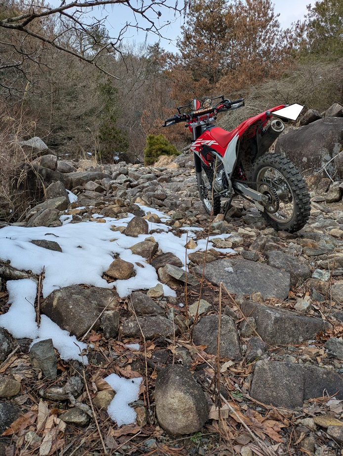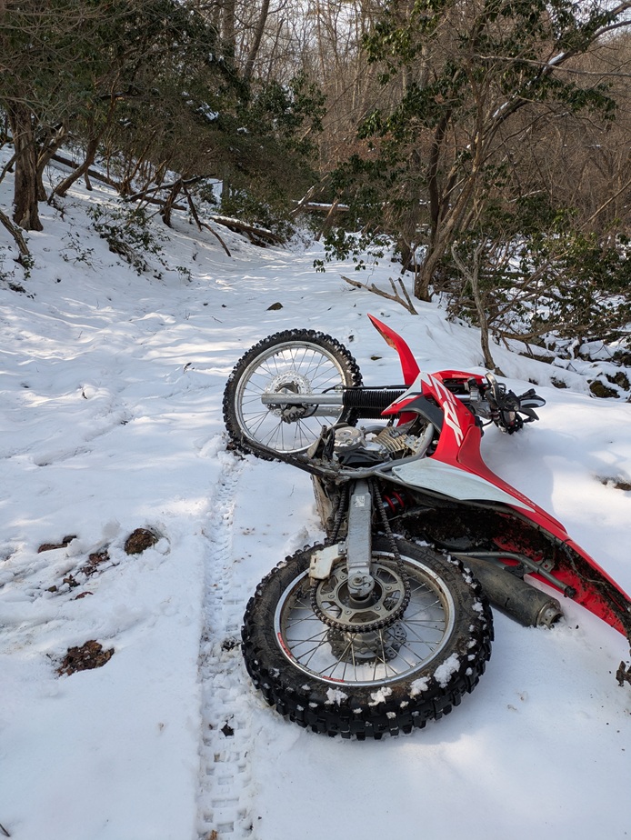 前回はロードバイク走行、雪道で痛い目にあいました。今回はそれに懲りてさわやかな林道を楽しみたいと思います。いつものお気に入りの林道、うん、さわやかです。