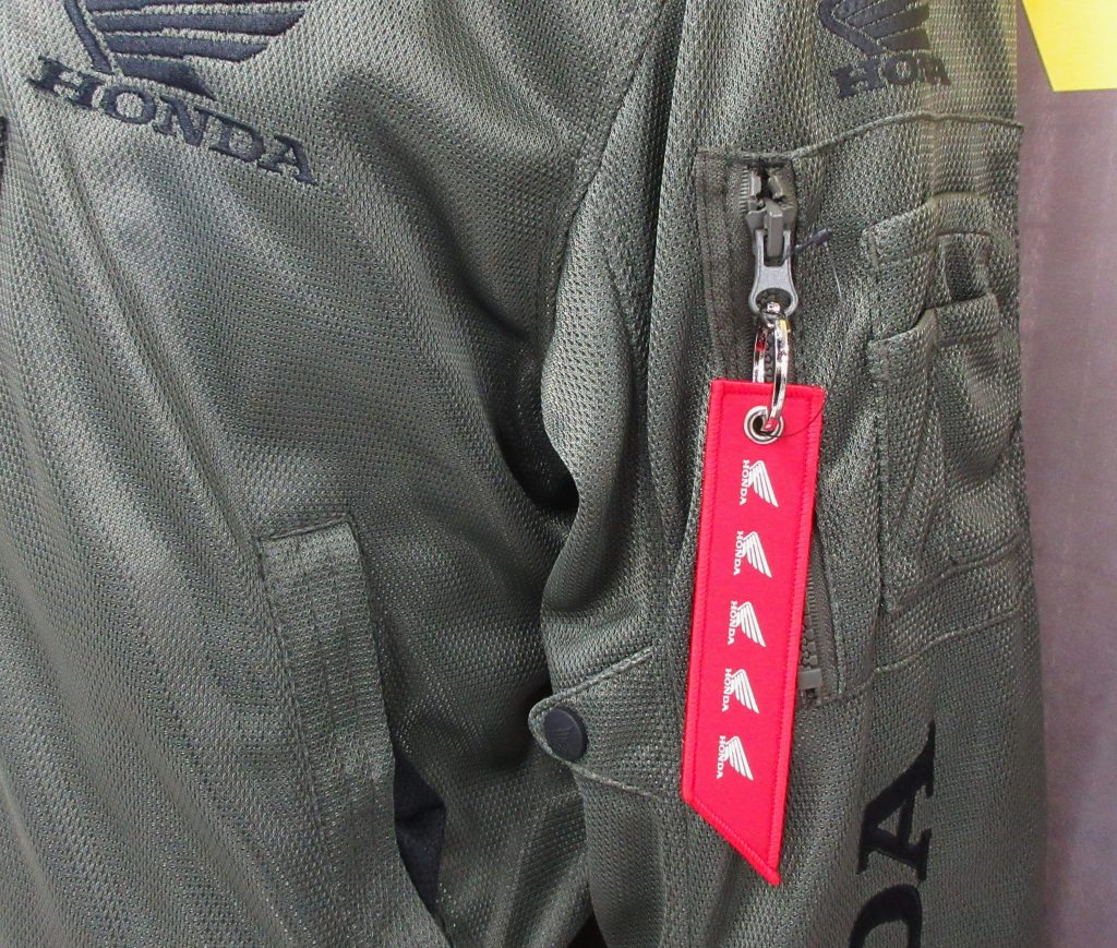 左袖ポケットにはオリジナルデザインのキーホルダーがついています。※取り外しも可能です