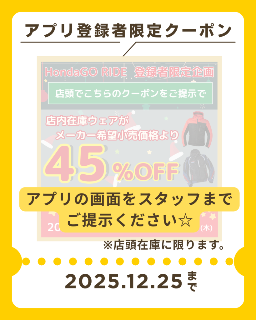 店内在庫ウェアがメーカー希望小売価格より45%オフ!クーポンです!