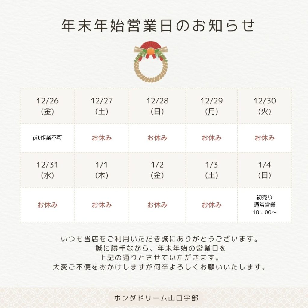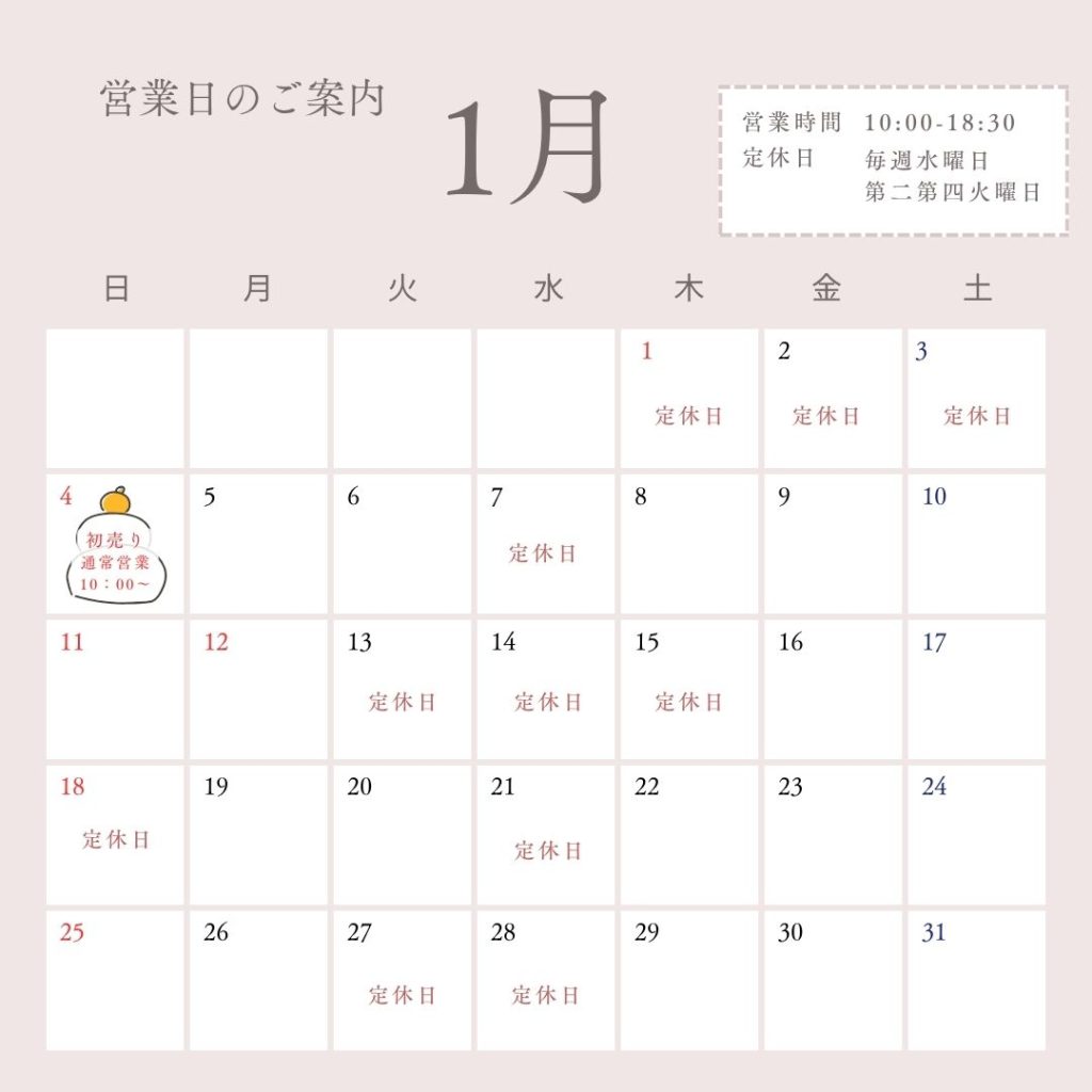 年始は2026年1月4日(日) 10:00より通常営業いたします。