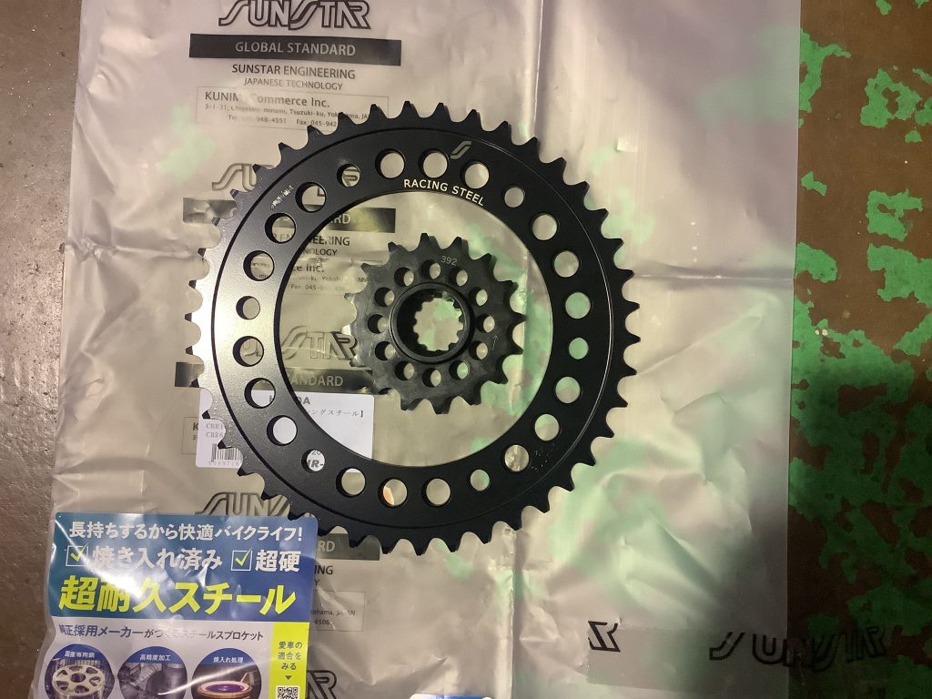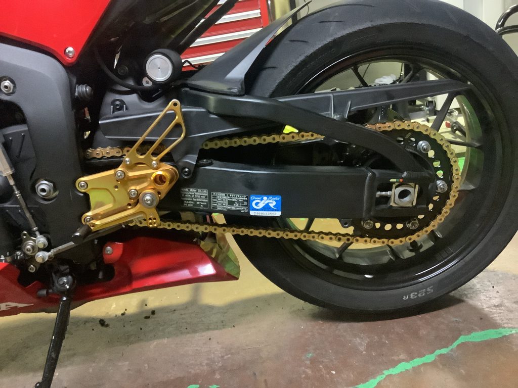 あとRスプロケットの丁数は41丁から42丁に変更。これによって若干加速がよくなります。現行モデルが純正42丁なので試してみます。これにより、立ち上がりで現行モデルに対して勝ちに行きます。