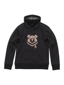 以前登場したNewデザインのくまちゃんバージョンのハイネック仕様ウインドブロックヒートアパレル!スウェット素材に防風フィルムをボンディング、さらに柔らかさと肌触りにすぐれたシャギー素材を使った3層構造が、抜群の保温性能を発揮!