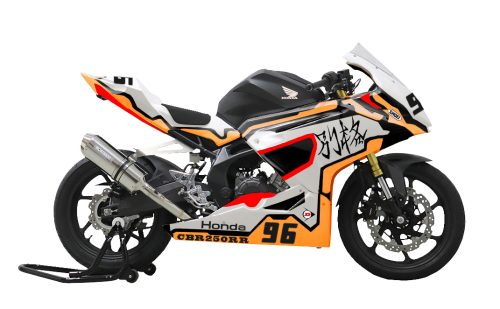 いきなり前置き無で入りますが、今回はお遊びで【CBR250RRにレーシングカウルを付けた時に白ゲルのままじゃカッコ悪いなー】と思い、スタッフのみんなでデザイン考えてみました。