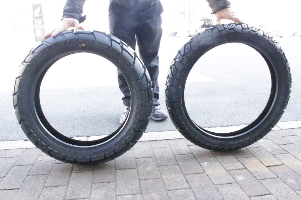 重量級アドベンチャーの迫力をさらに増幅させる、まさに“漢”のタイヤといった存在感です。
